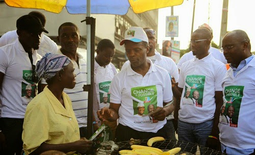 PHOTOS:: SEE Pastor Osinbajo campaigning to a woman selling plantain